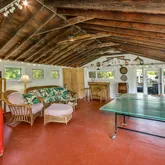 - Room Description: SUMMER HOUSE GAME ROOM: Painted concrete floor; vaulted wood ceiling; track lighting; 2 ceiling fans access to patio