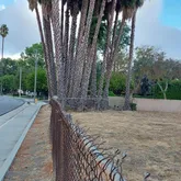 - Trees: Palm trees at north corner