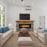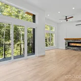 Experience seamless indoor/outdoor living with expansive floor-to-ceiling windows and soaring vaulted ceilings that frame the lush, private forest views. The central living area features a stylish stone fireplace and smart recessed lighting with nightlight accents, creating instant ambiance. This is a turn-key escape designed for total rejuvenation. Exceptional Features Included: