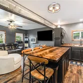 - Interior Features: Ceiling Fans, Entrance Foyer, Eat In Kitchen, Separate Formal Living Room, Home Office, Living Dining Room, Other, Quartz Counters, See Remarks, Second Kitchen, Storage, Bar, Natural Woodwork, In Law Floorplan, Main Level Primary, Primary Suite, Workshop