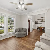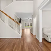 - Interior Features: Crown Molding, Double Vanity, Entrance Foyer, High Ceilings, Kitchen Family Room Combo, Bath In Primary Bedroom, Pantry, Soaking Tub, Tub Shower, Window Treatments, Ceiling Fans, Kitchen/Dining Combo, Living/Dining Combo, Programmable Thermostat
