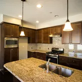 - Kitchen Features: Counter Top, Granite Counters, Island, Open to Family Room
