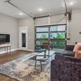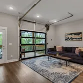 Step inside to an open-concept floor plan filled with natural light and sleek finishes. The heart of the home is the main living area, where a state-of-the-art remote-controlled glass garage door opens directly onto a covered deck, seamlessly blending indoor and outdoor living. Downstairs, a covered patio provides even more space to relax or entertain.