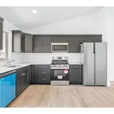 - Kitchen Appliances: Dishwasher, Disposal, Free Standing Gas Range, Free Standing Refrigerator, Microwave, Pantry, Plumbed For Ice Maker, Solid Surface Countertop, Stainless Steel Appliance