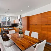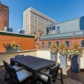 On the 3rd floor, which offers seamless indoor & outdoor living you'll enjoy a private deck oasis wrapped with planters (irrigated), a clear exposure of the skyline, BBQ with built-in gas line and a retractable awning (perfect for al fresco dining) If you enjoy entertaining or cooking you’ll love the modern kitchen with updated appliances, Snaidero Italian cabinetry, granite black leathered countertops and backsplashes, massive windows (2 sides), vaulted ceilings, terrific prep space, double ovens, counter seating, and open flow to the dining, powder-room and grand living room. The living room runs the full width of the home (18 ft) and overlooks Locust St to the south. Amazing sun! Amazing light!