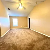 - Interior Features: Ceiling Fan(s), High Ceilings, Living Room/Dining Room Combo, Primary Bedroom Main Floor, Solid Surface Counters, Solid Wood Cabinets, Thermostat, Walk-In Closet(s)