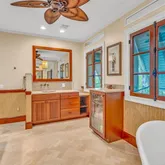 - Exterior Features: Bar, Storage, Sandy Beach, Outdoor Kitchen, Lanai, Lighting, Fruit Tree(s), Fencing, Built-in Grill