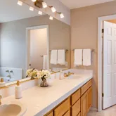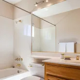 - Bathroom: Double Sinks, Primary - Oversized Tub, Primary - Stall Shower(s), Oversized Tub, Shower and Tub, Solid Surface, Stall Shower, Tile, Tubs - 2+