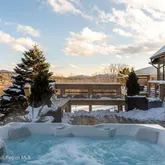 Step inside and prepare to be wowed. The great room, with its soaring 21-foot vaulted ceiling and a south-facing wall of glass, floods the space with natural light and showcases breathtaking, panoramic views. Picture yourself enjoying sunrise coffee or sunset beverage with this ever-changing masterpiece as your backdrop. The open kitchen is as stylish as it is functional, boasting leathered granite countertops, sleek black cabinetry, and modern appliances—perfect for hosting dinner parties or quiet nights in. When the chill sets in, cozy up by the wood-burning stove, and when warmer weather arrives, take the good times outside to the wraparound deck or soak under the stars in the saltwater hot tub. Upstairs, the primary suite is a true retreat, complete with its own private, covered deck for peaceful mornings or quiet evenings. Downstairs, two additional bedrooms offer space for others.