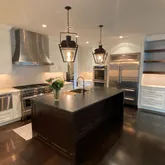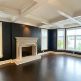The Gourmet Kitchen is outfitted with everything a chef would want. An eight-burner Thermador gas range with a steam oven, Thermador double wall ovens, a full and a half dishwasher, as well as an oversized Sub-Zero refrigerator. These fabulous appliances are topped with a gorgeous marble countertop and backsplash and surrounded by both open and closed shelving and an appliance garage. Adjacent to the Kitchen is a lovely breakfast room and a beamed, vaulted ceiling Great Room with skylights, large cast stone gas fireplace plus two sets of French doors out to the brand-new rear deck with privacy and beautiful view of the Reserve.