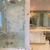 Back inside, you can take the graceful staircase or elevator to the upper level to get to the three bedroom suites and a convenient second floor laundry room. Double doors access the sumptuous main suite with a vaulted-ceiling bedroom, his/hers fitted walk-in closets and a barreled ceiling hallway to the lavish white marble Bathroom featuring his and hers vanities and heated floor. The additional Bedrooms, also, have ensuite Bathrooms and custom closets.