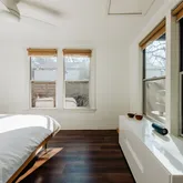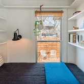 1 bed. 1 bath. Exactly enough. Updated flooring adds warmth throughout, while curated upgrades include quartz counters, penny tile backsplash, stainless steel appliances, and a subway-tiled bath. Shiplap accents nod to its cottage roots without feeling overdone. Natural light fills the home through new windows. The spacious kitchen flows into two living areas, including a second lounge with built-in daybed—ideal for guests or relaxed weekends. Key updates:
