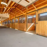 8 stalls with Dutch-Doors and attached runs, heated tack room, separate feed, tool, and shaving storage rooms. H/C wash rack, 3/4 barn bathroom, barn laundry room, and oversized equipment storage.