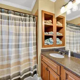 - Interior: Attic Expandable, Beamed Ceilings, Bookcases, Central Vacuum, Double Vanity, High Ceilings, In-Law Floorplan, Master On Main Level, Separate Shower, Split Bedroom Plan, Tile Bath, Two Story Foyer, Vaulted Ceiling(s), Walk-In Closet(s), Whirlpool Bath