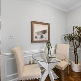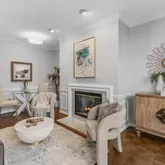 Unit 208A (Unit 44) is a well-proportioned one-bedroom, one-bath home with 574 square feet. Inside, classic details define the main living and dining area: crown molding, chair rail, and picture frame millwork bring structure and refinement to the space, while a wood-burning fireplace (with new firebox and flue) anchors the room and adds warmth and character.