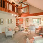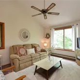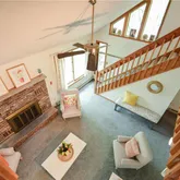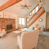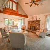 - Room Description: Wood fireplace, vaulted ceiling with fan