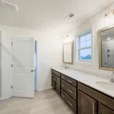 Three additional bedrooms, all generously sized, share a full bath with double vanities and a tub/shower combo. The laundry room, largest of all our floor plans, is conveniently located just outside the owner's suite