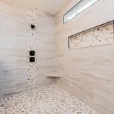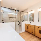 - Interior: Beamed Ceilings, Bookcases, Double Vanity, High Ceilings, Master On Main Level, Pulldown Attic Stairs, Separate Shower, Soaking Tub, Split Bedroom Plan, Tile Bath, Vaulted Ceiling(s), Walk-In Closet(s)