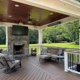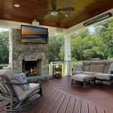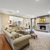Step into the dramatic two-story foyer beneath a motorized crystal chandelier and feel the elevated energy throughout. Rich wide-plank hardwood floors, custom trim, and a soaring stone gas/masonry fireplace anchor the main level. The updated gourmet kitchen is a true chef’s dream with GE Monogram stainless steel appliances, dual wall ovens, new 5-in-1 Advantium oven/microwave, warming drawer, new gas cooktop, and a walk-in pantry. The bright sunroom leads directly to your expansive outdoor living spaces.