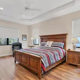 - Interior Features: Ceiling Fan(s), High Ceilings, Open Floorplan, Solid Surface Counters, Split Bedroom, Tray Ceiling(s), Walk-In Closet(s), Window Treatments