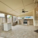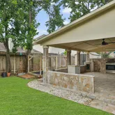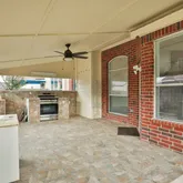 - Exterior Features: Covered Patio, Fence, Outdoor Kitchen, Patio, Private Yard, Storage