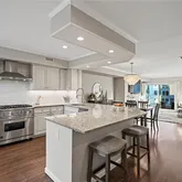 - RoomDescription 1: MAIN LEVEL: Chef’s kitchen w/Viking 6-burner gas range/Bosch dishwasher/French door refrigerator/Granite countertops/Solid wood soft-close cabinetry/Oversized window, Powder room, Dining area, Living room w/wood-burning fireplace/Window bench/Sliding glass doors to balcony.
