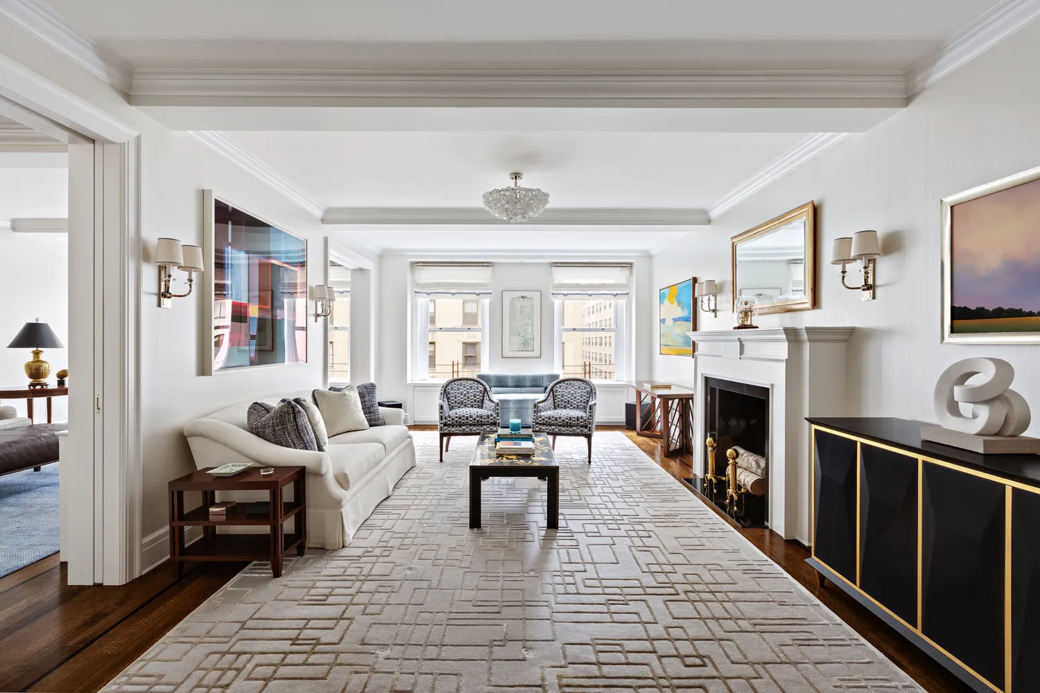 A gracious gallery opens into a well-proportioned floor plan with exposures to the east, west, and north, providing pleasant natural light throughout the day. The expansive living room features a decorative fireplace...Welcome to 21 East 87th Street, Apartment 6D, a stunningly renovated classic seven-room home in a premier Carnegie Hill cooperative. Spanning approximately 2,400 square feet, this elegant three-bedroom, three-bath residence offers a rare combination of scale, comfort, and prewar detail.