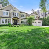 architectural details including high ceilings, transom-topped windows and luxurious finishes. Double height entry unfolds to living room with fireplace, fabulous chef's eat-in kitchen with large island and stone terrace access; open to family room with coffered ceiling, stone fireplace; butler's pantry, dining room, guest suite and mudroom. Superb master suite with cove ceilings, office/den, spa bath and multiple custom walk-in closets, three en-suite bedrooms and laundry room comprise second floor. Lower level offers second family room,playroom, gym, bedroom and full bath.