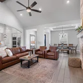 - Room Features: BeamedCeilings, CeilingFans, HighCeilings, RecessedLighting, VaultedCeilings