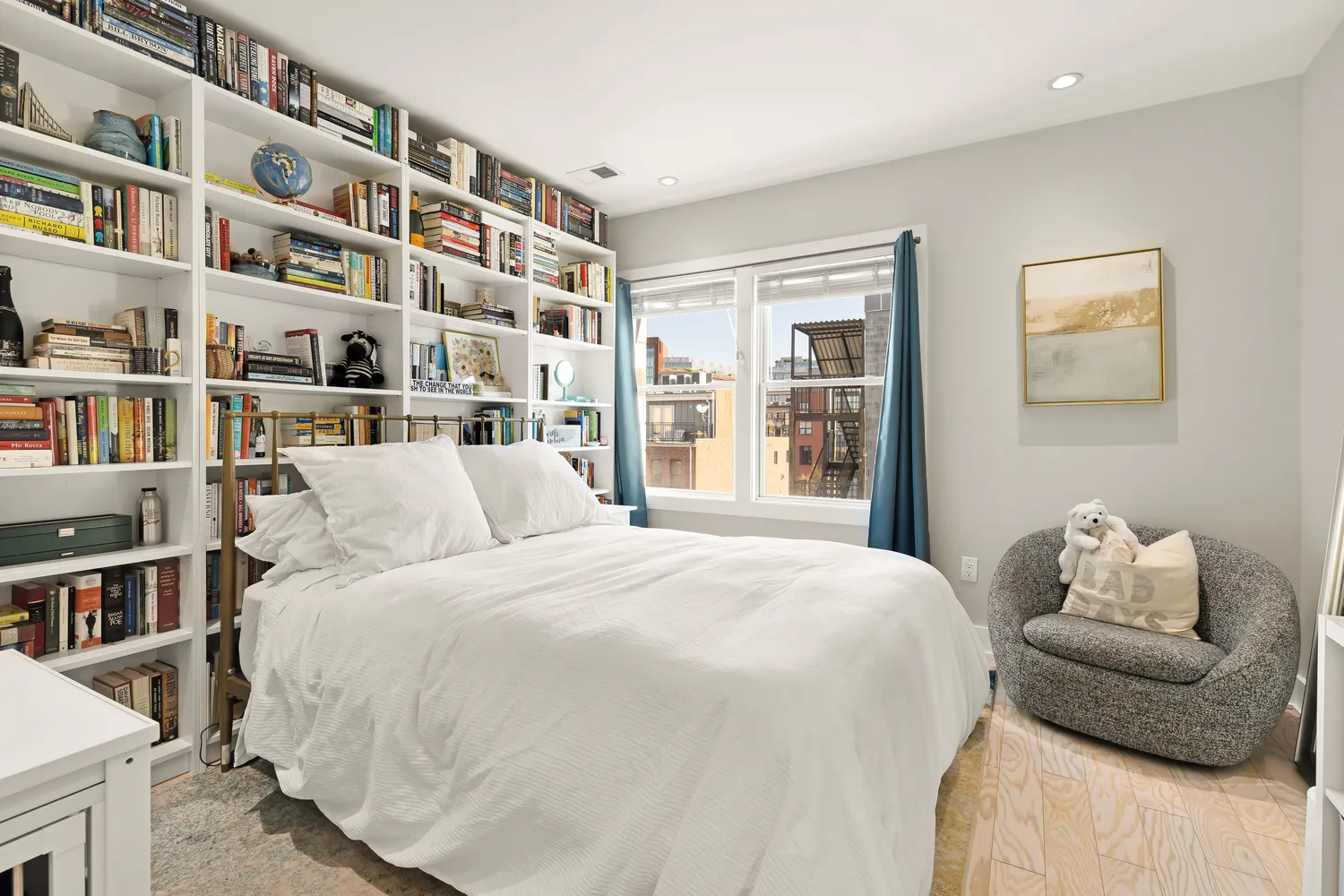 The unit | High ceilings, natural light (east facing), and an ideal floor plan with a balance of open concept and private spaces. The chef's kitchen provides ample countertop working space and storage space with breakfast bar connecting to the airy living and dining area. Down the hall you’ll find the full bathroom and guest bedroom which boasts custom ELFA system closets. The primary bedroom delivers a room fit for a king bed, walk-in closet and full ensuite bathroom. All with washer/dryer in-unit, on-site secure garage parking, elevator, and shared rooftop with monument views.