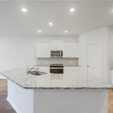 - Kitchen Features: Cabinets White, Eat-in Kitchen, Kitchen Island, Stone Counters, View to Family Room