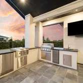 - Exterior Features: Covered Patio, Deck, Fully Fenced, Fence, Sprinkler Irrigation, Outdoor Kitchen, Patio, Private Yard