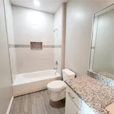 Beautifully designed apartment ready for new occupants! Features contemporary flooring, granite countertops, living, and bedrooms. Spacious layout with designer vanities and stylish finishes throughout. Includes Steel Refrigerator, Stove and Microwave and Full Size Washer and Dryer. Property Features: