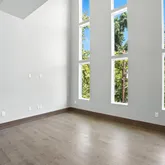 Soaring ceilings and oversized windows that flood the space with natural light