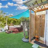 - Exterior Features: Fencing, Water Display, Storage, Shed, Hot Tub