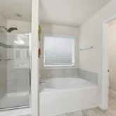 - Interior Features: Breakfast Bar, Double Vanity, Granite Counters, High Ceilings, Kitchen Family Room Combo, Pantry, Soaking Tub, Separate Shower, Tub Shower, Walk In Pantry, Ceiling Fans, Living/Dining Combo, Programmable Thermostat