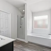 - Interior Features: AllBedroomsDown, CeilingFans, GardenTubRomanTub, HighCeilings, PrimaryDownstairs, MainLevelPrimary, SeparateShower, SmartThermostat, TubShower, Vanity, VaultedCeilings, WalkInClosets, WindowTreatments, GraniteCounters, KitchenIsland, KitchenFamilyRoomCombo, KitchenDiningCombo, Pantry, SolidSurfaceCounters