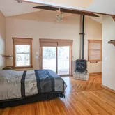 vast space with plenty of closets plus room for hobbies or exercise along with a cozy stove and