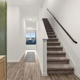 Step inside to a beautiful foyer featuring luxury vinyl floors and a striking accent wall with custom trim work. The highly sought-after open floor plan offers walls of windows that flood the home with natural light.