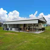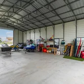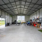 Rv cover is 30x50 with a 10x30 enclosure sitting on a 30x50 cement slabMetal garage: is 30x50 enclosed with a 10 ft by 30 lean to sitting on a 40x50 cement slab