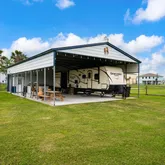 Rv cover is 30x50 with a 10x30 enclosure sitting on a 30x50 cement slab