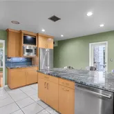 - Room Kitchen Features: Built-in Trash/Recycling, Granite Counters, Kitchen Island, Pots & Pan Drawers, Remodeled Kitchen, Self-closing cabinet doors, Self-closing drawers, Stone Counters
