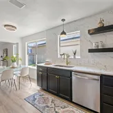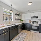 - Room Description: Upgraded kitchen with stainless steel appliances , open shelving , and fleshly painted cabinetry,