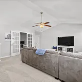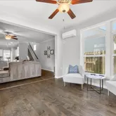 - Interior Features: Master Downstairs, Walk-in Closet(s), Tray Ceiling(s), High Ceilings, Kitchen Island, Ceiling Fan(s), Pantry, Blinds/Shades, Gas Log, Walk-In Closet(s)