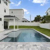- Public Remarks: Brand new 3-story pool home with Atlantic Ocean views! Enjoy sunrises and sea breezes from dual balconies in this 3,131 sq ft residence featuring 4 bedrooms, 4.5 baths, elevator, saltwater pool and oversized lot. Perfect for entertaining or a lucrative short-term rental. The first floor offers a 2-car garage, bedroom, and bath. The second floor boasts an open living/kitchen area, half bath, guest suite, and covered ocean-view balcony. Upstairs, find another guest room plus a luxurious master suite with private balcony. Outdoors, relax in the saltwater pool, spacious yard, and covered lanai. Built for peace of mind with Hardie board siding, impact-resistant windows, and a 2-10 builder's warranty, this home blends coastal luxury with modern convenience just steps from the beach. NO HOA, nightly rentals permitted.