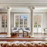 Stunning, pristine Beaux Arts townhouse located on an architecturally significant street in sought after Kalorama. This brick and limestone gem, thoughtfully renovated and restored, was originally constructed as the ballroom for an adjacent property and features a distinguished great room with 12-foot ceilings, marble gas fireplace, antique Baccarat chandelier, beautiful crown moldings, and wet bar. The lower level features a gourmet sunlit kitchen with large center island and prep sink, marble counters,...Stunning, pristine Beaux Arts townhouse located on an architecturally significant street in sought after Kalorama. This brick and limestone gem, thoughtfully renovated and restored, was originally constructed as the ballroom for an adjacent property and features a distinguished great room with 12-foot ceilings, marble gas fireplace, antique Baccarat chandelier, beautiful crown moldings, and wet bar. The lower level features a gourmet sunlit kitchen with large center island and prep sink, marble counters, wine storage, and high-end appliances. The kitchen opens to a spectacular private rear garden and elevated deck with extensive landscaping and hardscaping for a variety of entertaining options. The upper level primary suite features a marble bath and French doors leading to Juliette balconies overlooking the rear garden and terrace. An additional guest bedroom with en suite bath has a charming gas fireplace. A two-car detached garage with built-in storage complete this rare offering. This is a truly special home.
