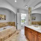- Room Description: Jetted tub/dual vanities/2 closets/accessible