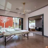 * Private Day Spa: 5,660 sf featuring a massage room, his-and-hers bathrooms, yoga room, hidden guest suite, dry sauna, steam room, spa shower and hot tub.