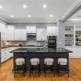- Kitchen Features: Breakfast Bar, Cabinets Other, Cabinets White, Eat-in Kitchen, Kitchen Island, Pantry, Stone Counters, View to Family Room