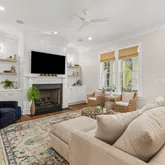Situated on 0.42 acres and framed by a classic wraparound porch, this corner-lot home offers a warm and inviting arrival that immediately feels established and timeless. The entry is stylish and welcoming, featuring a large front door, chic lighting, and a beautifully wallpapered hall that sets the tone for the interiors beyond. The main living room is relaxed yet refined, centered around a large gas fireplace flanked by custom built-ins. Floating shelves and detailed shiplap accent work add architectural...Situated on 0.42 acres and framed by a classic wraparound porch, this corner-lot home offers a warm and inviting arrival that immediately feels established and timeless. The entry is stylish and welcoming, featuring a large front door, chic lighting, and a beautifully wallpapered hall that sets the tone for the interiors beyond. The main living room is relaxed yet refined, centered around a large gas fireplace flanked by custom built-ins. Floating shelves and detailed shiplap accent work add architectural interest while creating a space that feels both comfortable and elevated. Doors open directly to the screened porch, allowing the living room to extend naturally outdoors and making it ideal for everyday living or entertaining. The screened porch overlooks a private backyard retreat where a saltwater gunite pool is surrounded by generous patio space and a deep lawn. Lush greenery frames the setting, offering privacy and a sense of calm. This outdoor environment feels equally suited for hosting gatherings or enjoying quiet moments at home. At the heart of the home, the kitchen and breakfast area are both functional and inviting. A large island with quartzite countertops anchors the kitchen, offering bar seating, storage, and a natural gathering place. High end stainless steel appliances and abundant cabinetry complement the space. The breakfast area is wrapped in walls of windows, allowing you to enjoy meals while overlooking the pool and backyard, filling the space with natural light throughout the day. A nearby bar and mudroom area adds a thoughtful layer of convenience, providing additional storage and an easy transition space that keeps daily life organized and seamless. The formal dining room offers a more traditional setting for entertaining while remaining connected to the flow of the home. It is ideal for hosting holidays, dinner parties, or intimate gatherings. A well placed powder room serves guests on the main level and features timeless wallpaper, creating a chic and polished impression. Nearby, a dedicated office with an attached full bathroom provides flexibility for working from home or accommodating guests with privacy and comfort. Upstairs, the primary suite is a true retreat. The bedroom is spacious and filled with natural light from numerous windows, creating an airy and serene atmosphere. A large walk-in closet offers generous storage, while the ensuite bathroom is well appointed with a soaking tub and a walk-in glass shower. Two additional guest bedrooms on the second floor each include walk-in closets and share a full bathroom. A conveniently located laundry room adds ease and functionality to everyday routines. The third floor offers exceptional versatility. This level includes a bedroom, a full bathroom, and a media or bonus room featuring a built-in window seat that adds warmth and character. Whether used for guests, recreation, a second office, or a quiet retreat, this space adapts easily to a variety of needs. With generous storage, thoughtful systems, and spaces that live beautifully both indoors and out, this home offers a rare blend of comfort, flexibility, and timeless Lowcountry charm. Buyer pays a one-time neighborhood enhancement fee of .5% x sales price to Daniel Island Community Fund at closing. Buyer/buyer's agent to confirm any information deemed important, such as school zone, flood zone, square footage, acreage, etc.